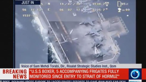 Iran khẳng định, đoạn phim này được UAV truyền về vào đúng khoảng thời gian Mỹ ra tuyên bố đã bắn hạ một UAV của Iran trên eo biển Hormuz.