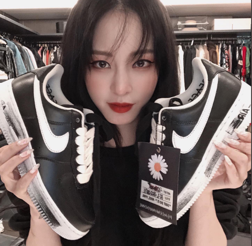 Nữ diễn viên Han Ye Seul khoe đôi giày hoa cúc yêu thích là sản phẩm sáng tạo của "ông hoàng Kpop" G-Dragon. Đôi giày hoa cúc do chính tay G-Dragon thiết kế gây sốt trong thời gian qua. Rất nhiều thần tượng đã nhanh tay bắt kịp xu hướng sở hữu mẫu giày này bao gồm Suho (EXO), diễn viên Park Shin Hye, Eunji (Apink), Giriboy |