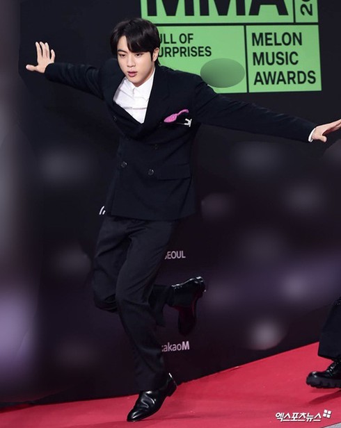 Khoảng khắc Jin BTS vấp suýt "vồ ếch" khi đi thảm đỏ được chú ý hơn cả. Chàng trai đang bước đi nhưng không may bị vấp. Jin BTS bình tĩnh, dang tay tạo tư thế thẳng bằng mà vô cùng đẹp mắt rồi tiếp tục bước đi tự tin khiến nhiều người ngả mũ thán phục.