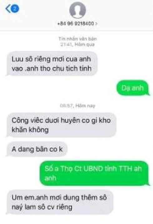 Kẻ mạo danh nhắn tin cho lãnh đạo một huyện trên địa bàn tỉnh Thừa Thiên Huế.. |