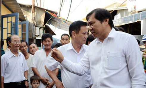 Ông Huỳnh Đức Thơ (bìa phải) trong lần thị sát ở quận Hải Châu, TP Đà Nẵng - Ảnh: báo NLĐ. |