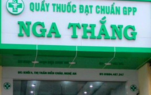 Hiệu thuốc Nga Thắng ở khối 4, thị trấn Diễn Châu, tỉnh Nghệ An. |