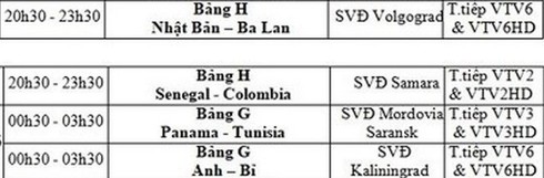 Lịch thi đấu World Cup 2018 hôm nay 28/6: