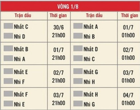 Thứ tự các trận đấu vòng 1/8 World Cup 2018