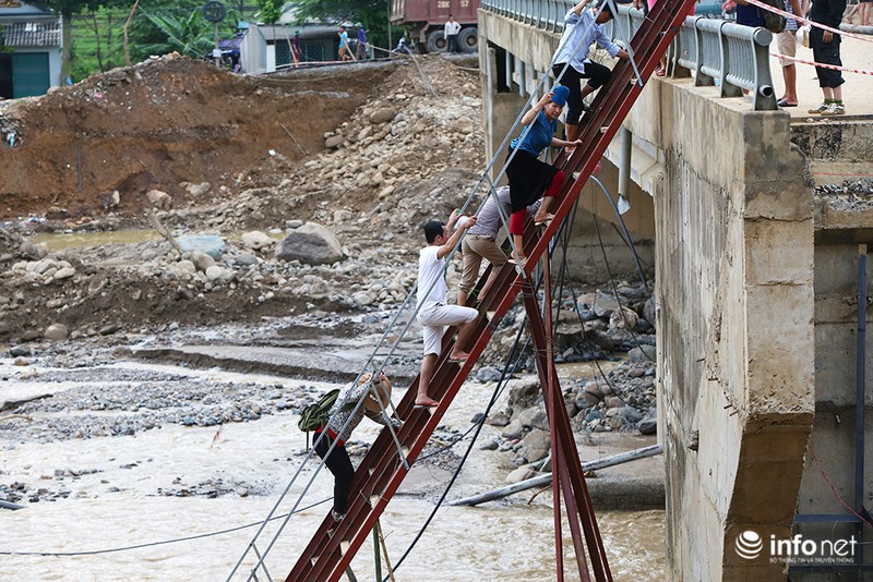 Đồng bào dân tộc được hướng dẫn đi lối khác trong khi khắc phục Cầu Nậm Păm |