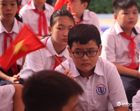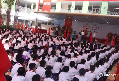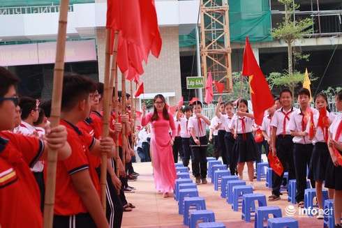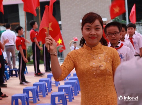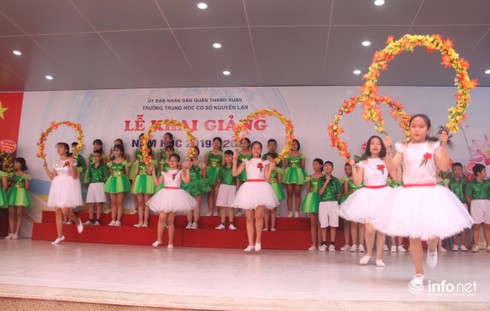 Tuy là trường mới nhưng năm nay trường Nguyễn Lân cung không dùng bóng bay, thay vào đó chỉ có cờ và hoa.