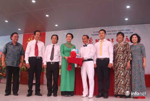 Gia đình nhàgiáo Nhân dân Nguyễn Lân, tặng sách lưu niệm cho nhà trường nhân ngày khai giảng năm học đầu tiên.