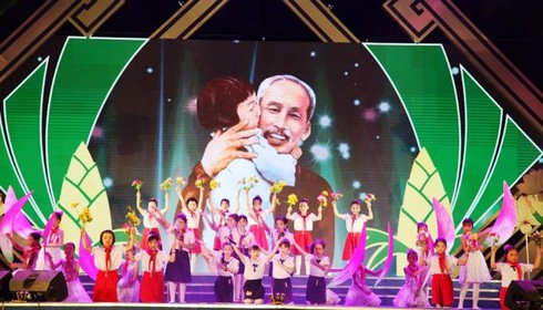 Chương trình nghệ thuật “Lời Bác sáng đường ta đi” trong đêm khai mạc với nhiều ca khúc đặc sắc sắc để lại ấn tượng tốt đẹp trong lòng du khách. (Ảnh. VHNA) |
