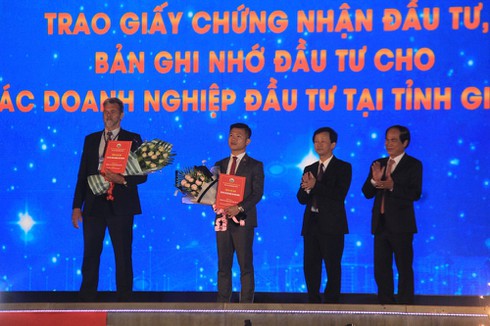 Ban Tổ chức trao Giấy chứng nhận đầu tư, bản ghi nhớ đầu tư cho các doanh nghiệp đầu tư tại tỉnh Gia Lai. |