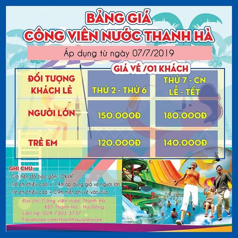 Bảng giá trọn gói tại công viên nước Thanh Hà. |