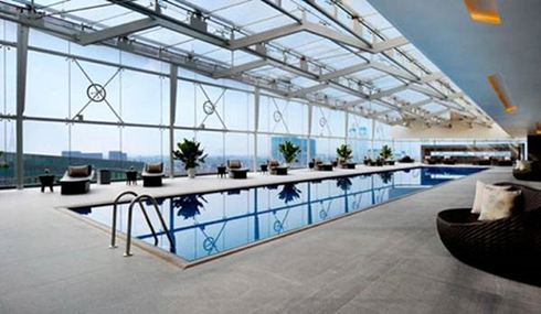 Tổng diện tích đất để xây dựng công trình là 6,3ha. Khách sạn được bao bọc bởi những thảm cỏ xanh mướt với khoảng vườn rộng nhiều cây cối. Tầng 9 của khách sạn là bể bơi trong nhà, phòng tập thể dục và một khu spa cao cấp ngoài trời, tạo nên một không gian mở thoáng đãng và thân thiện với thiên nhiên.