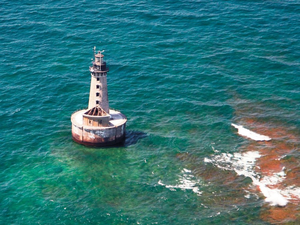 Bãi đá ngầm nơi ngọn hải đăng tọa lạc ngày nay do thuyền trưởng Charles C. Stannard phát hiện vào năm 1835. Stannard vô cùng kinh ngạc khi thấy một vật cản không xác định cách xa bờ giữa một vùng nước trong vắt. Bãi đá chỉ chìm khoảng 1,2 m dưới mặt nước, thuyền trưởng nhận ra hiểm họa từ ngọn núi vô hình này đối với tàu thuyền qua đây.