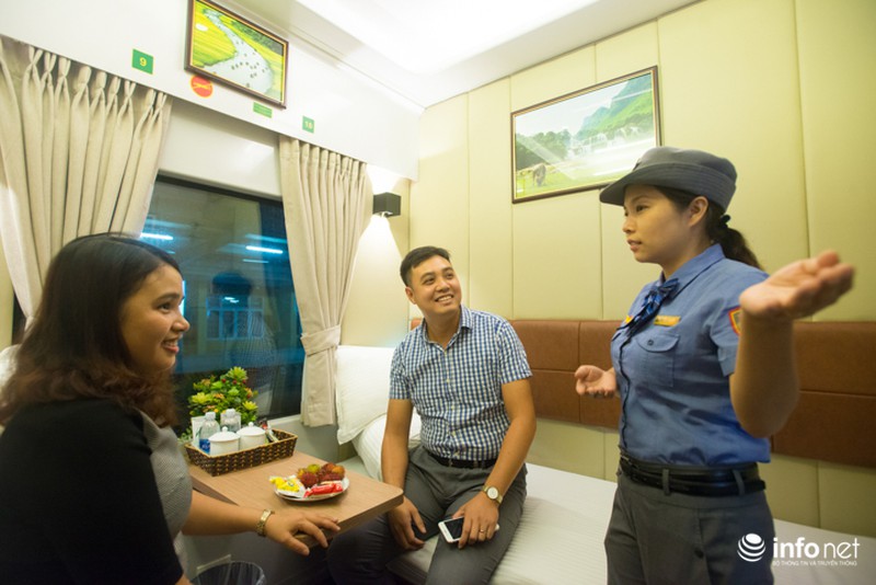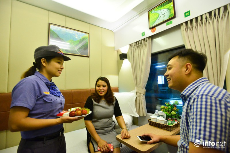 Hành khách có vé khoang 2 giường đặc biệt được phục vụ nước uống và bữa ăn miễn phí. |