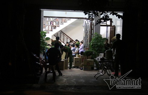 Lực lượng công an khám xét trụ sở DN Tuyết Liêm đêmqua. |