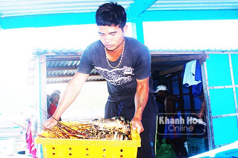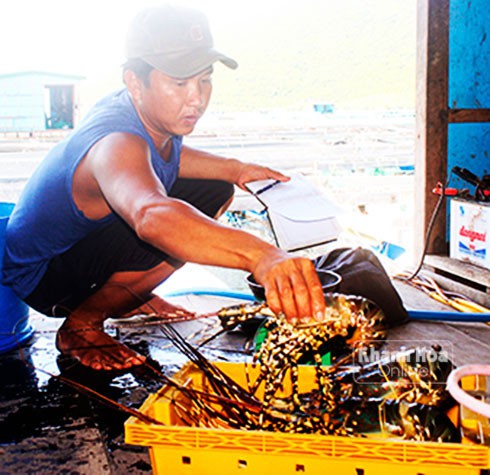 Chúng tôi đến bè tôm của ông Trương Văn Việt (người xã Vạn Hưng, huyện Vạn Ninh), tại thôn Đầm Môn, xã Vạn Thạnh. Ông Việt đang ngồi thất thần nhìn 6 nhân công lặn vớt tôm bị bệnh bán cho thương lái để vớt vát đôi chút vì giá khá bèo. Hơn 10 năm nuôi tôm, nhưng ông Việt chưa từng chứng kiến cảnh tôm hùm chết liên tục như hiện nay.