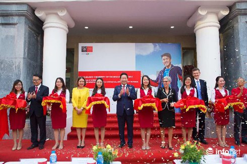 Các quan khách cùng cắt băng khánh thành khu học xá "Australia thu nhỏ" trong lòng Hà Nội. |