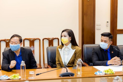 Mai Phương Thúy cùng đại diện doanh nghiệp trao 20 tỷ đồng cho quỹ hỗ trợ phòng chống dịch Covid-19. |