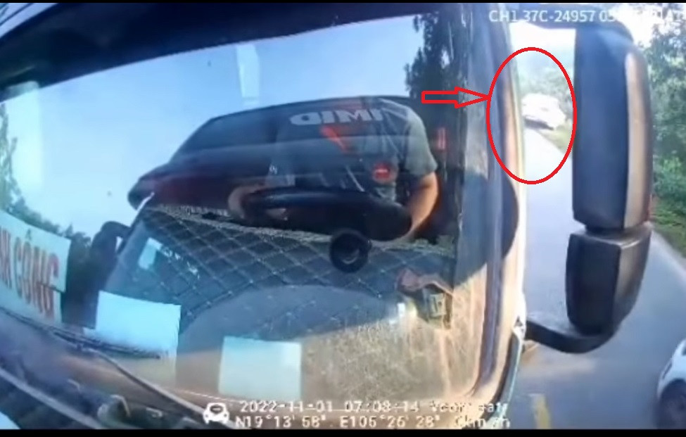 Trước tình huống này, xe ô tô gắn camera hành trình đi sau ô tô trắng đã đánh lái, lấn làn để tránh đâm ô tô trắng nhưng lại đối đầu trực tiếp với chiếc xe tải đi ngược chiều. Rất may cả 2 xe chủ động giảm tốc độ nên vụ va chạm không gây hậu quả nghiêm trọng.