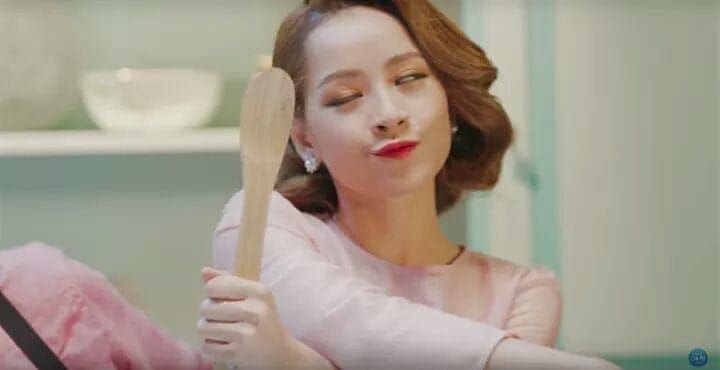 Chi Pu đầu tư rất kỹ cho mỗi MV. Trang phục và kiểu tóc, cách make up của cô đều rất nổi bật, chỉ trừ đôi mắt "con bay con đậu" như thế này.