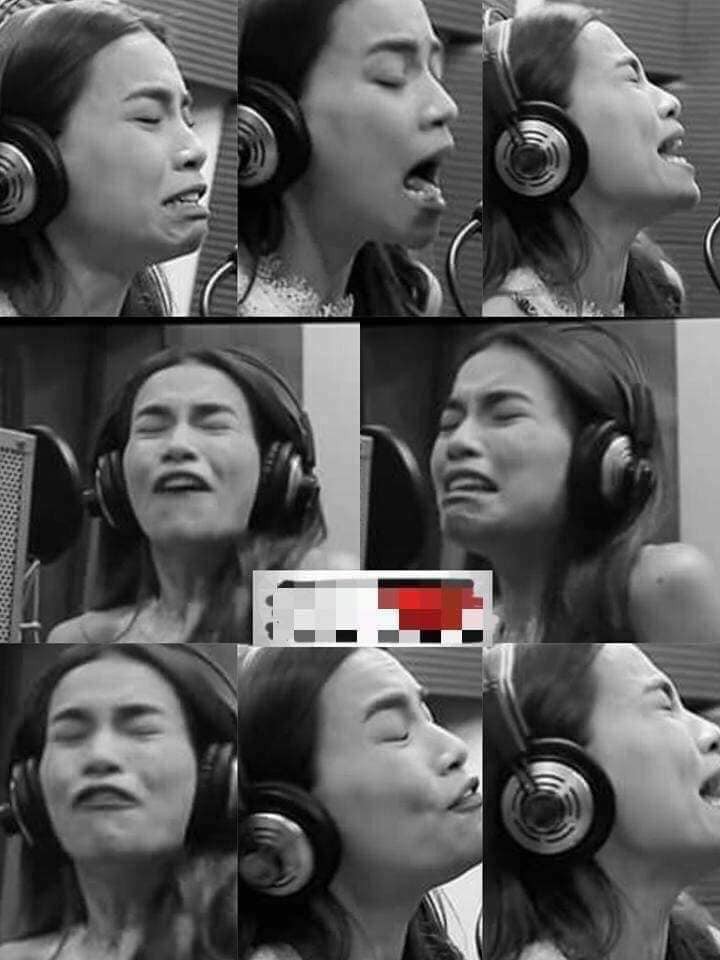 Đây là hình ảnh của Hồ Ngọc Hà trong phòng thu âm. Có lẽ ca khúc quá da diết, tình cảm nên nữ ca sĩ mới "quằn quại" như vậy.