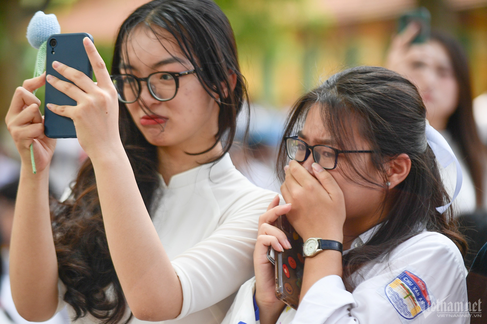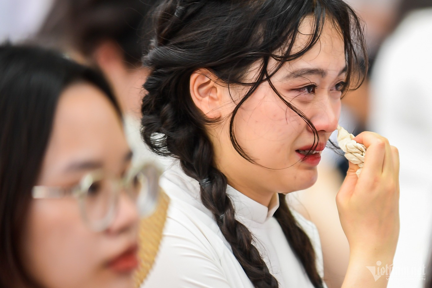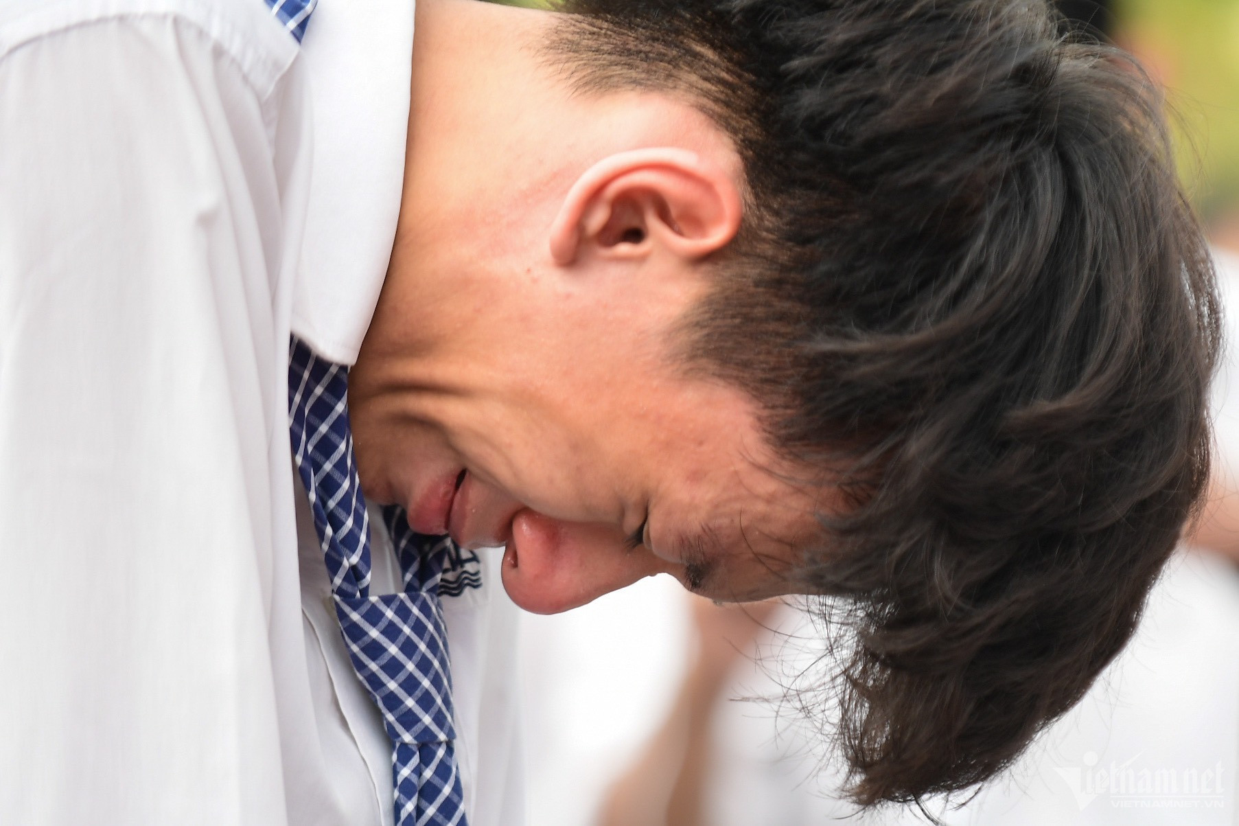 Trước thời khắc tạm biệt tuổi học trò, các nam, nữ sinh lớp 12 Trường THPT Chu Văn An (Hà Nội) đã không kìm được nước mắt. Hình ảnh tại lễ bế giảng, sáng 20/5.