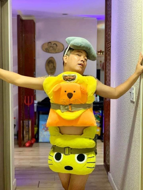 Người ta thì chỉ cần 1 chiếc gối nhưng Hồ Việt Trung lại cần đến 2 chiếc mà vẫn không che hết được phần bụng "phát phì" của mình. Dù cố tạo kiểu thần thái bao nhiêu nhưng người xem lại "cười ra nước mắt" bấy nhiêu.