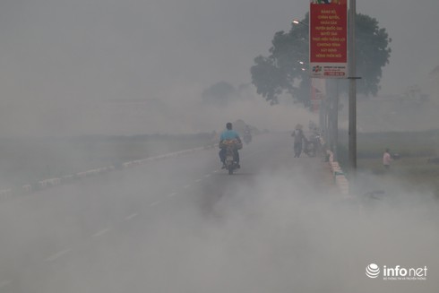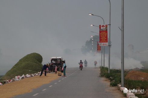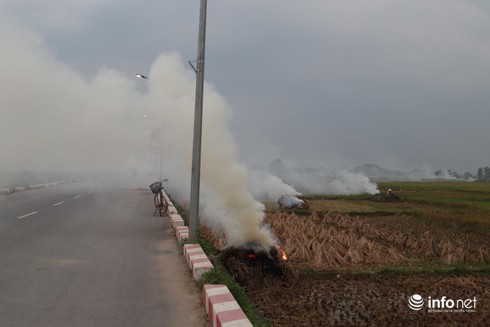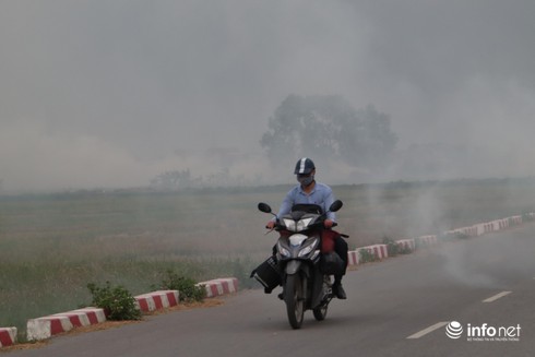 ....khói từ các đụn rơm thiêu đốt cộng hưởng với nền nhiệt độ tăng cao của miền Bắc, khiến bầukhông khí trở nên ngột ngạt, khó thở. |