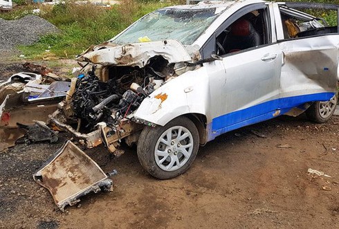 Chiếc taxi bể nát sau vụ tai nạn. |