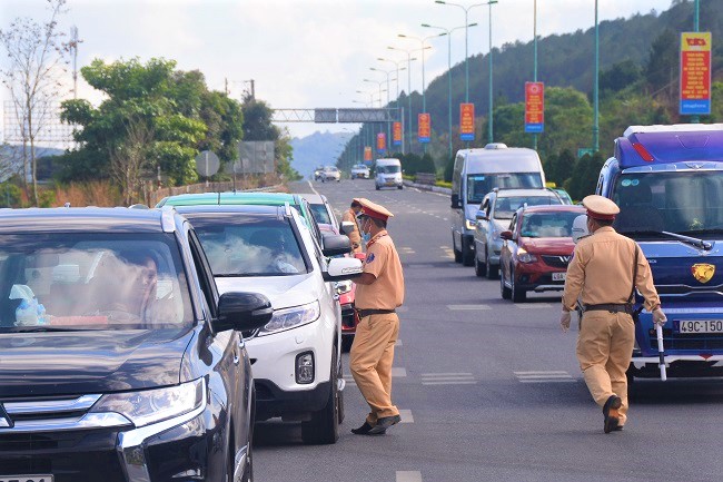 Lực lượng chức năng kiểm tra nồng độ cồn đối với người điều khiển phương tiện lưu thông trên quốc lộ |