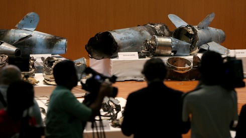 Những mảnh tên lửa mà Ả Rập Xê út thu thập được sau vụ tấn công hai nhà máy lọc dầu. |