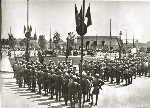 | Nhân dân xuống đường ủng hộ Chính phủ lâm thời, tháng 9/1945. |