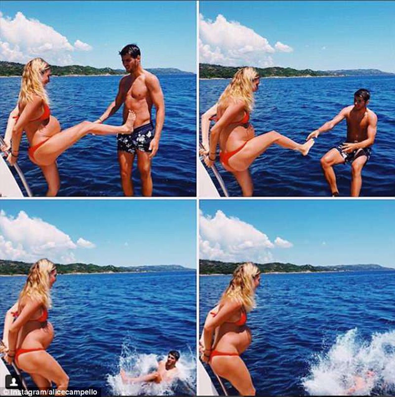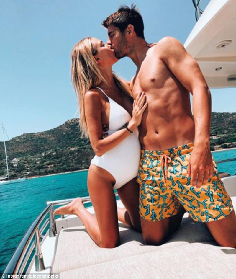 Tiền đạo sinh năm 1991 chia sẻ hình ảnh hai vợ chồng khóa môi nhau trên du thuyền, và cả hình ảnh nhí nhảnh của cả hai khi khoảnh khắc Sardinia dùng chân đẩy Morata xuống biển được ghi lại đầy đủ.