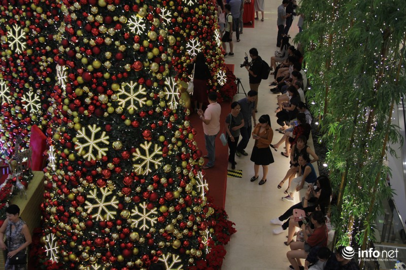 Những cây thông Noel được trang hoàng tại sảnh của 1 trung tâm thương mại ở quận 1, thu hút giới trẻ chiêm ngưỡng và chụp ảnh lưu niệm |