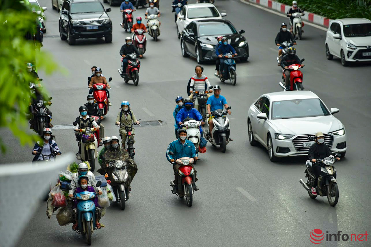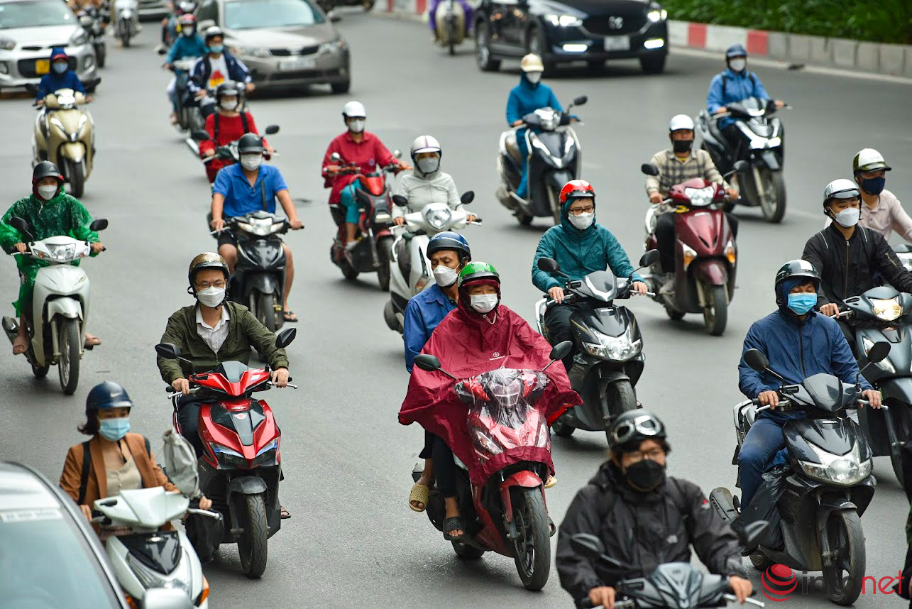 Sáng sớm 10/10, không khí lạnh đã ảnh hưởng sâu tới Hà Nội và các tỉnh, thành phía Bắc, người dân Thủ đô ra đường với những chiếc áo ấm.