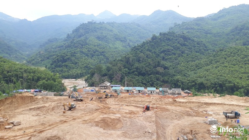 Đại công trường xây dựng giữa đại ngàn đang khẩn trương để sớm hoàn thành khu TĐC. |