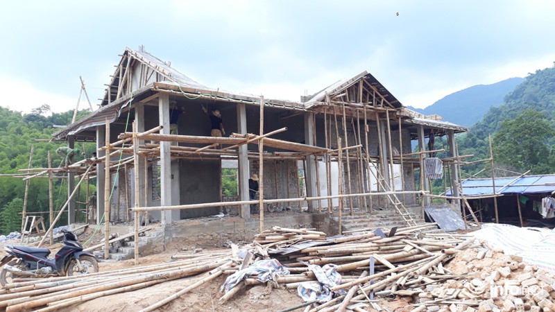 Nhiều ngôi nhà sàn cũng đang được các hộ dân bản tháo dỡ để chuyển đến nơi ở mới và dần hoàn thiện. |