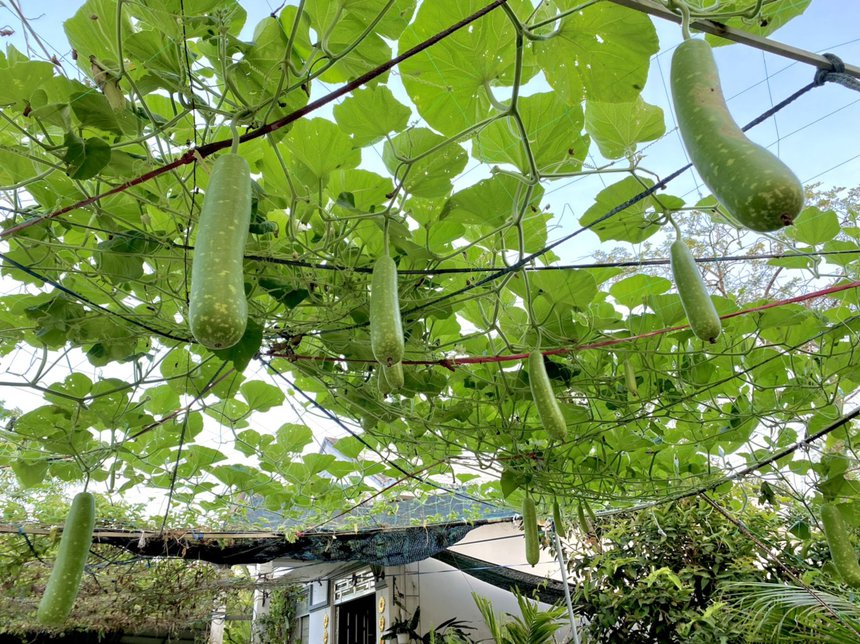 Để khu vườn tươi tốt quanh năm, Minh trồng cải ngọt, cải xanh, rau muống và mùa nào thức nấy. Nhiều khi, anh thử trồng rau củ trái mùa nhưng tốc độ phát triển rất chậm và èo uột. Ví như cà rốt, bí ngòi trồng vụ cuối năm có ra quả nhưng không tốt.