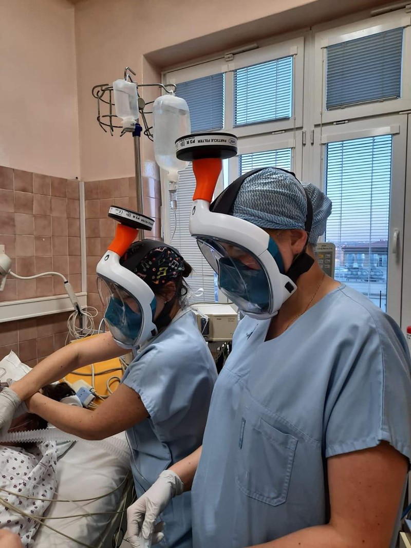 Mặt nạ của thợ lặn cũng được bác sĩ tại Cộng hòa Séc tận dụng trong quá trình điều trị cho bệnh nhân mắc Covid-19. (Ảnh: Twitter) |