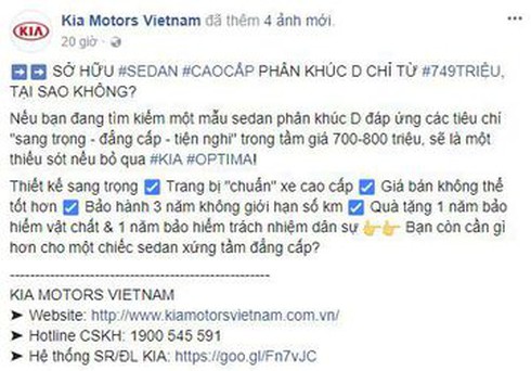 Lần này, Kia Motor Việt Nam không phát hành thông cáo báo chí và cũng không đăng công khai mức giá này trên website của mình mà chỉ thông báo trên fanpage. Mức giá trên website hiện tại vẫn giữ nguyên như mức đã công bố trong thông cáo báo chí trước đó.
