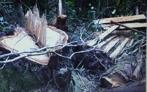 Hiện trường phá rừng Pơ Mu tại Krông Bông( Ảnh: Chi cục kiểm lâm vùng IV cung cấp) |