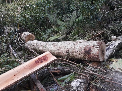 Quá trình kiểm tra phát hiện dọc tuyến đường mòn từ khoảnh 2 đến khoảnh 3 Tiểu khu 1219 có nhiều gốc cây bị chặt hạ, nằm rải rác hai bến tuyến đường mòn.