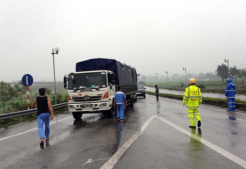Thiếu tá Chu Văn Ngọc - Đội Cảnh sát giao thông số 5, tổ trưởng tổ công tác tại chốt số 5 quốc lộ 1 chân cầu Phù Đổng (quận Long Biên, Hà Nội) chia sẻ: Ngày 3/4, khắc phục những khó khăn do trời mưa và đường trơn, vị trí cắm chốt nằm trên cao tốc, tổ công tác đã lắp hệ thống hàng rào cảnh báo và thông báo cho lái xe từ cách xa hàng trăm mét, nhờ thế, việc dừng xe để kiểm tra không gặp cản trở. Tổ công tác tại chốt giao thông số 5 đã kiểm tra gần 100 phương tiện và chưa ghi nhận lái xe nào có biểu hiện nhiễm bệnh.
