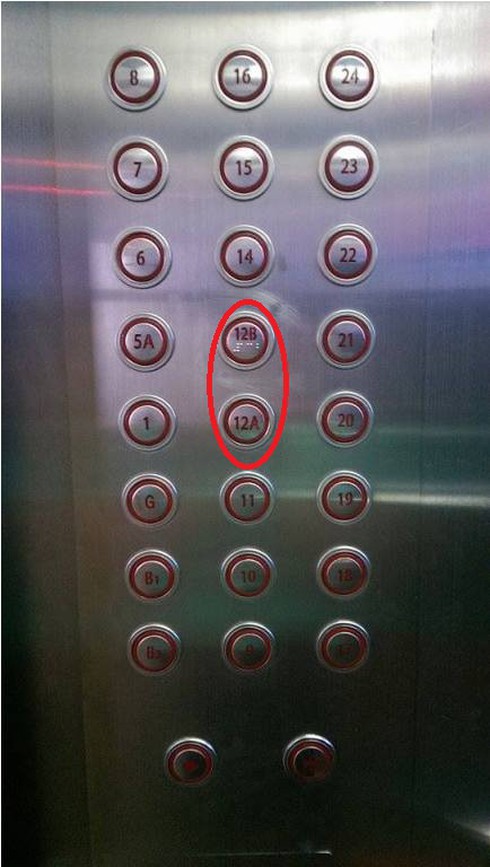 Tầng 13 chung cư không hiện hữu, thay vào đó là tầng 12B, 12A. |