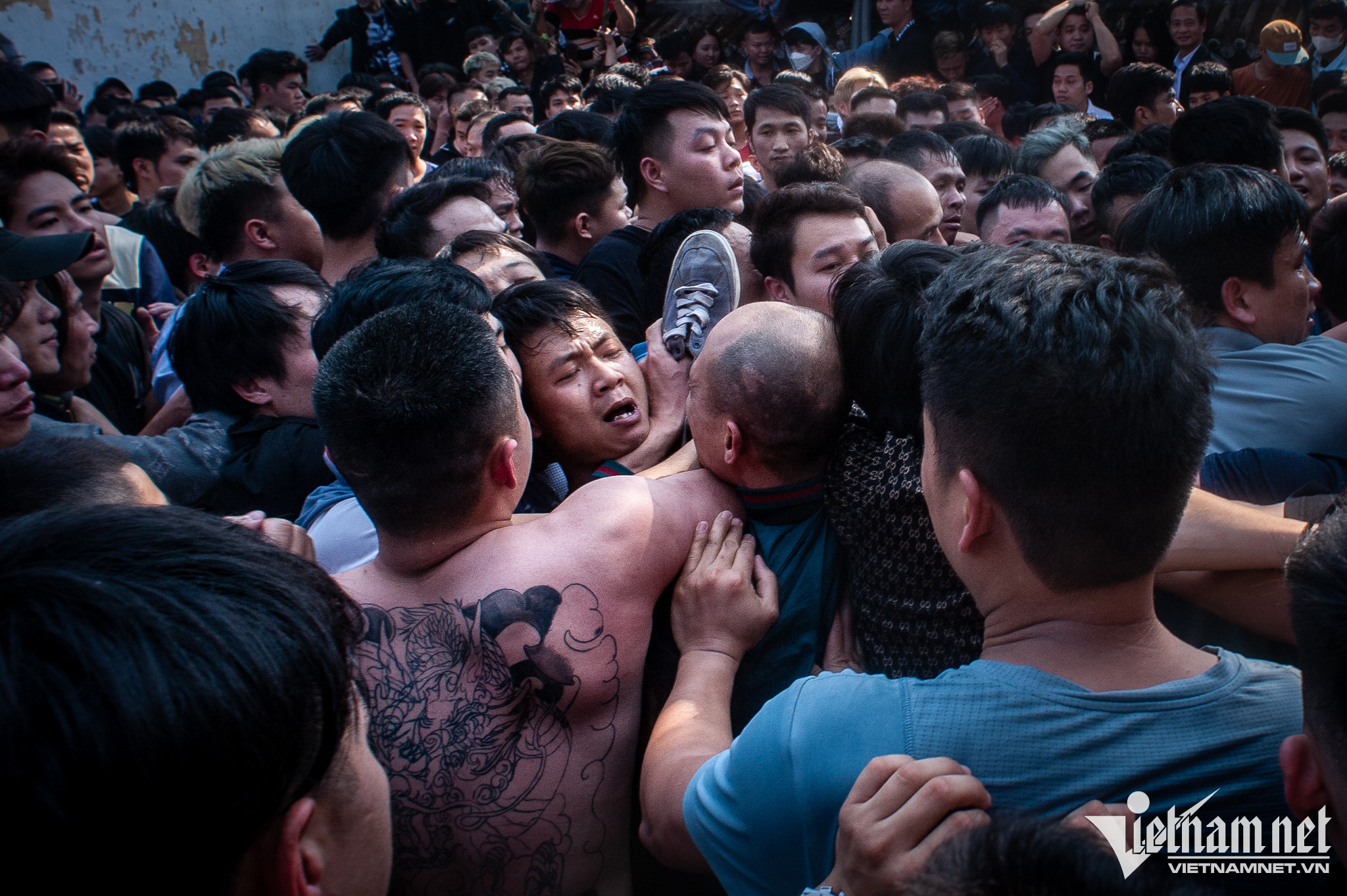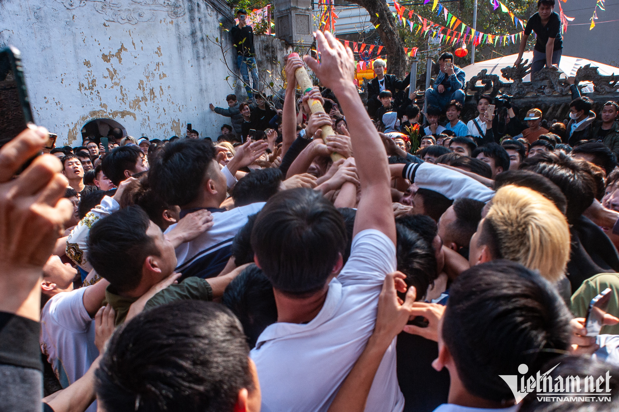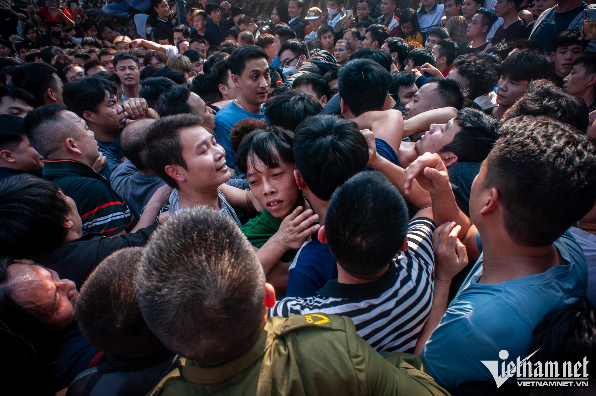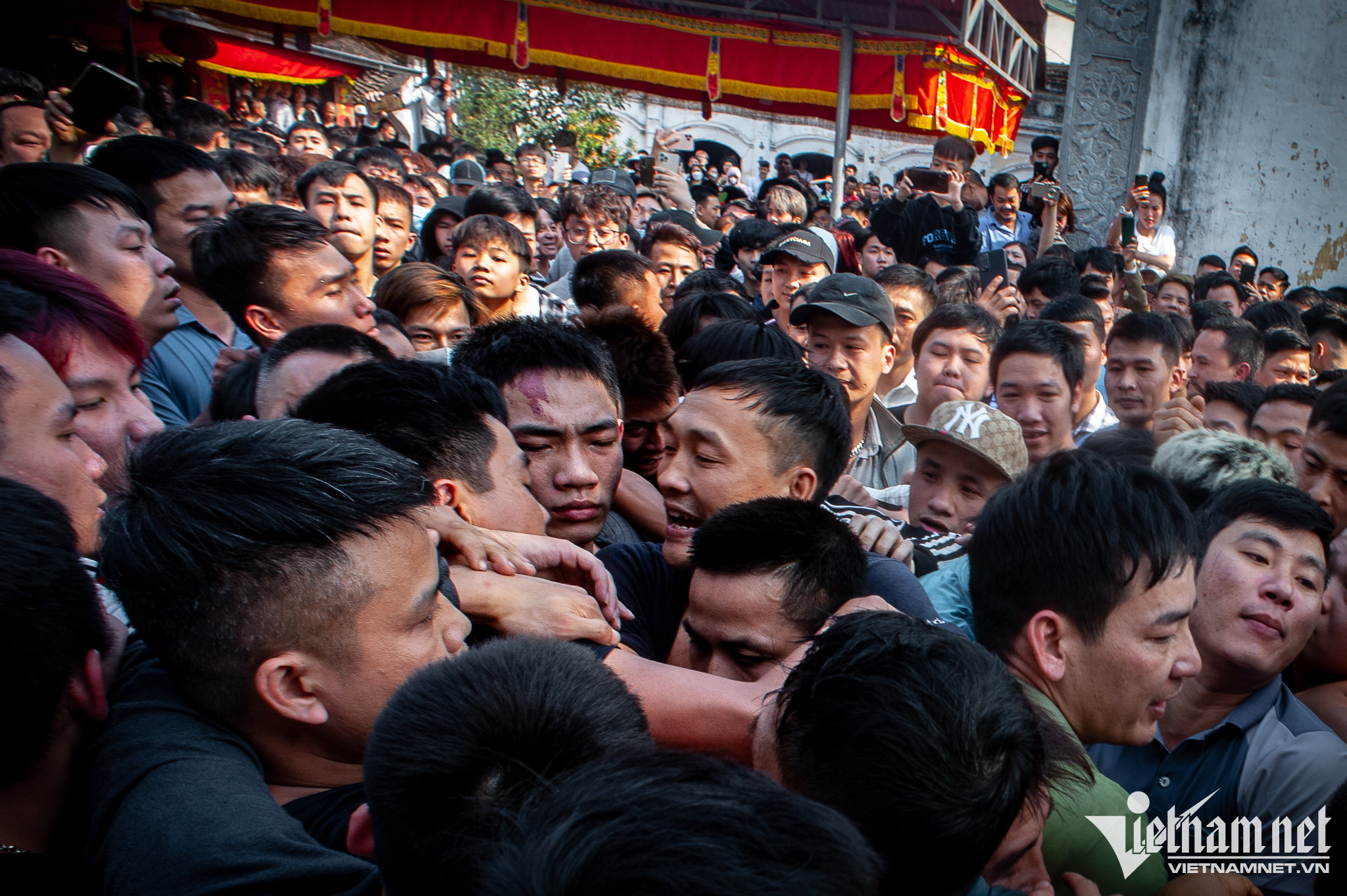 Cảnh tượng chen chúc, thậm chí xảy ra ẩu đả trong quá trình giằng bông. Có trường hợp bị chấn thương, chảy máu.