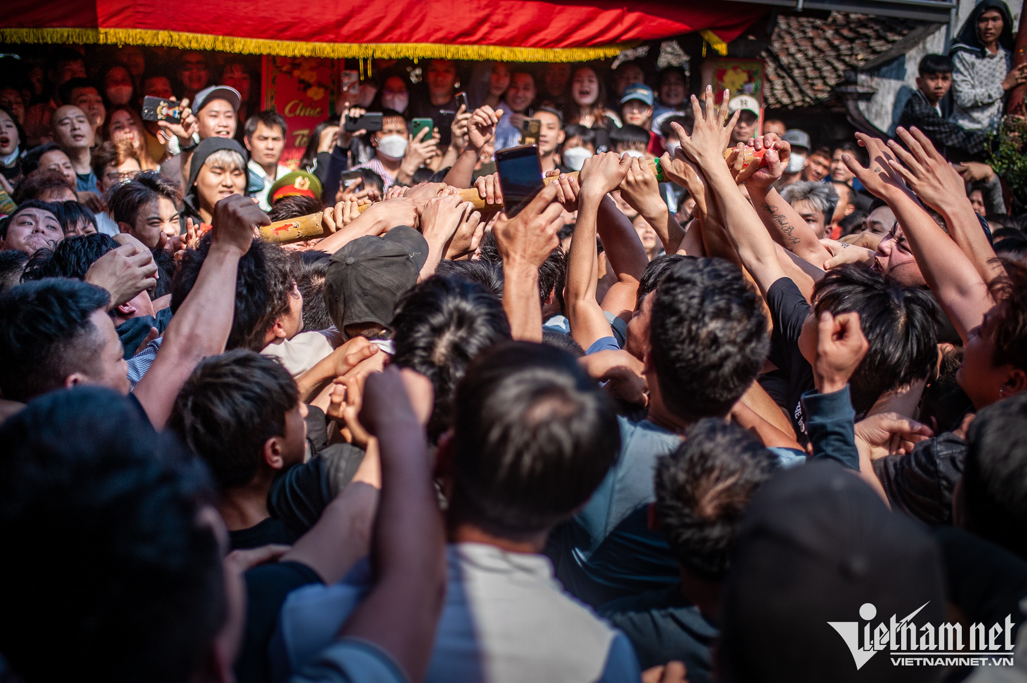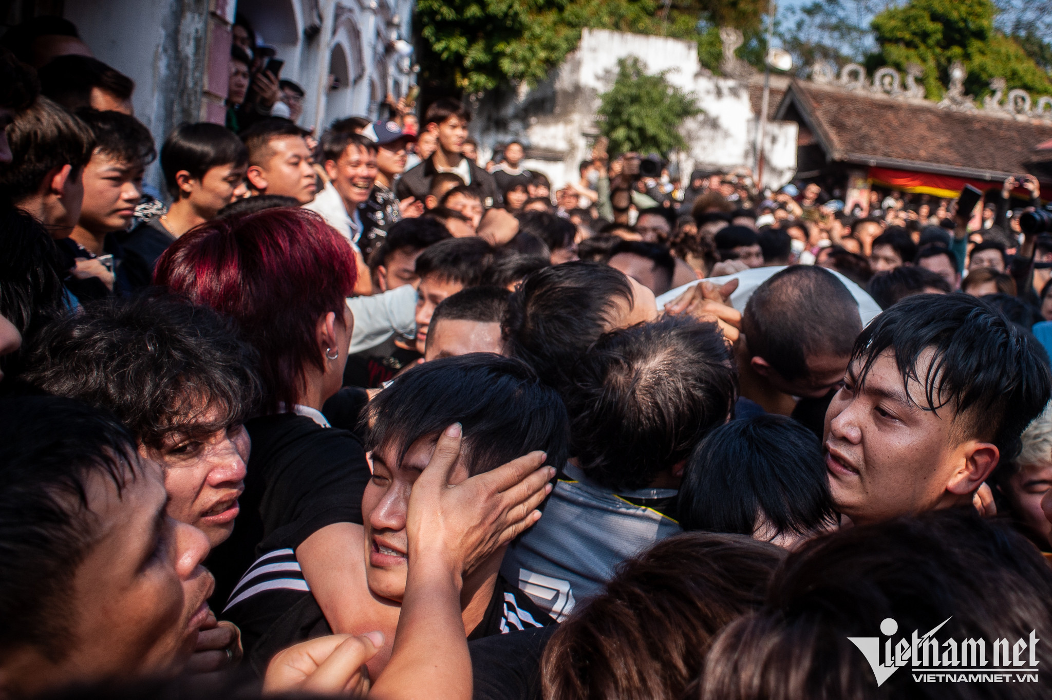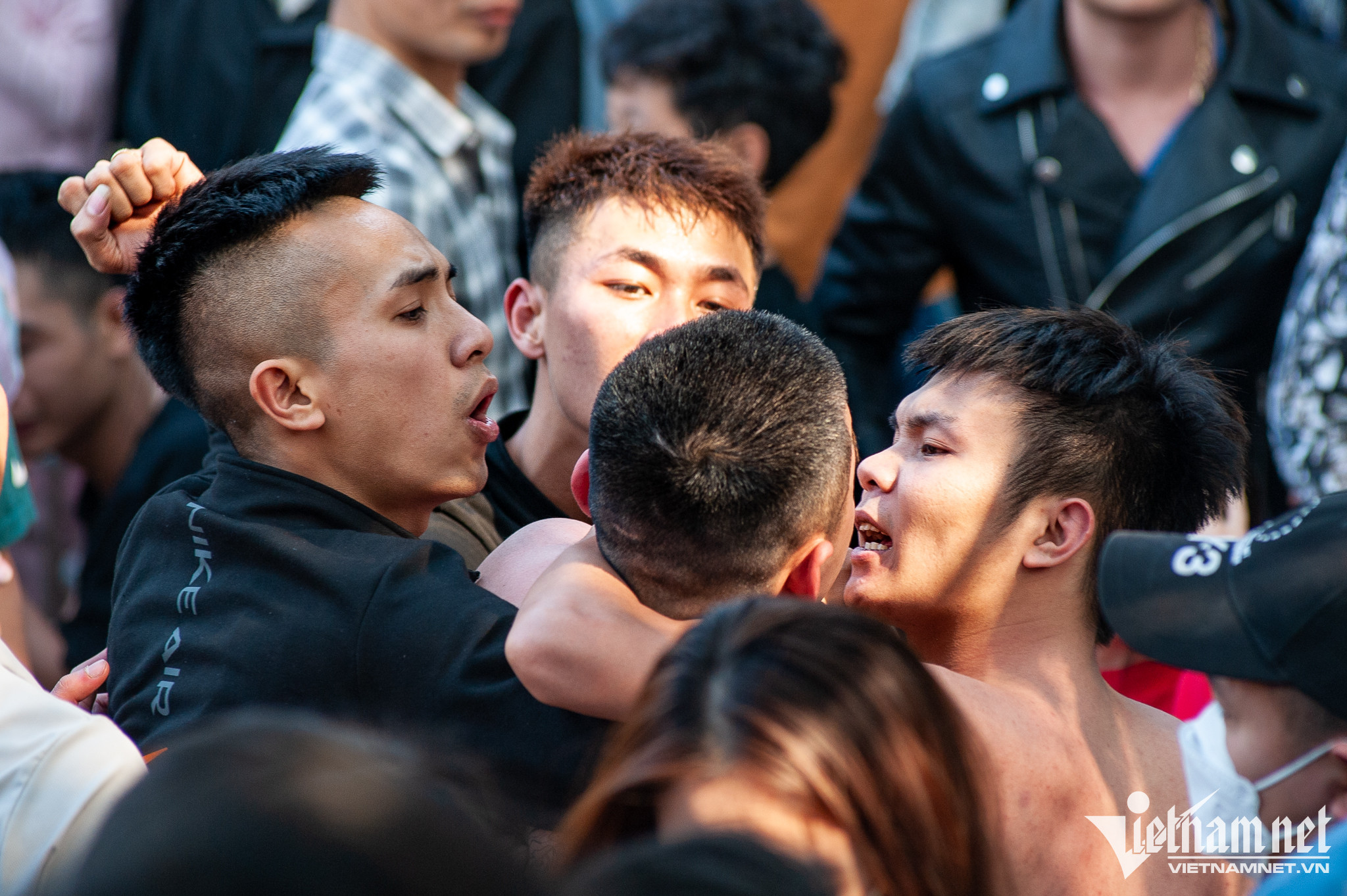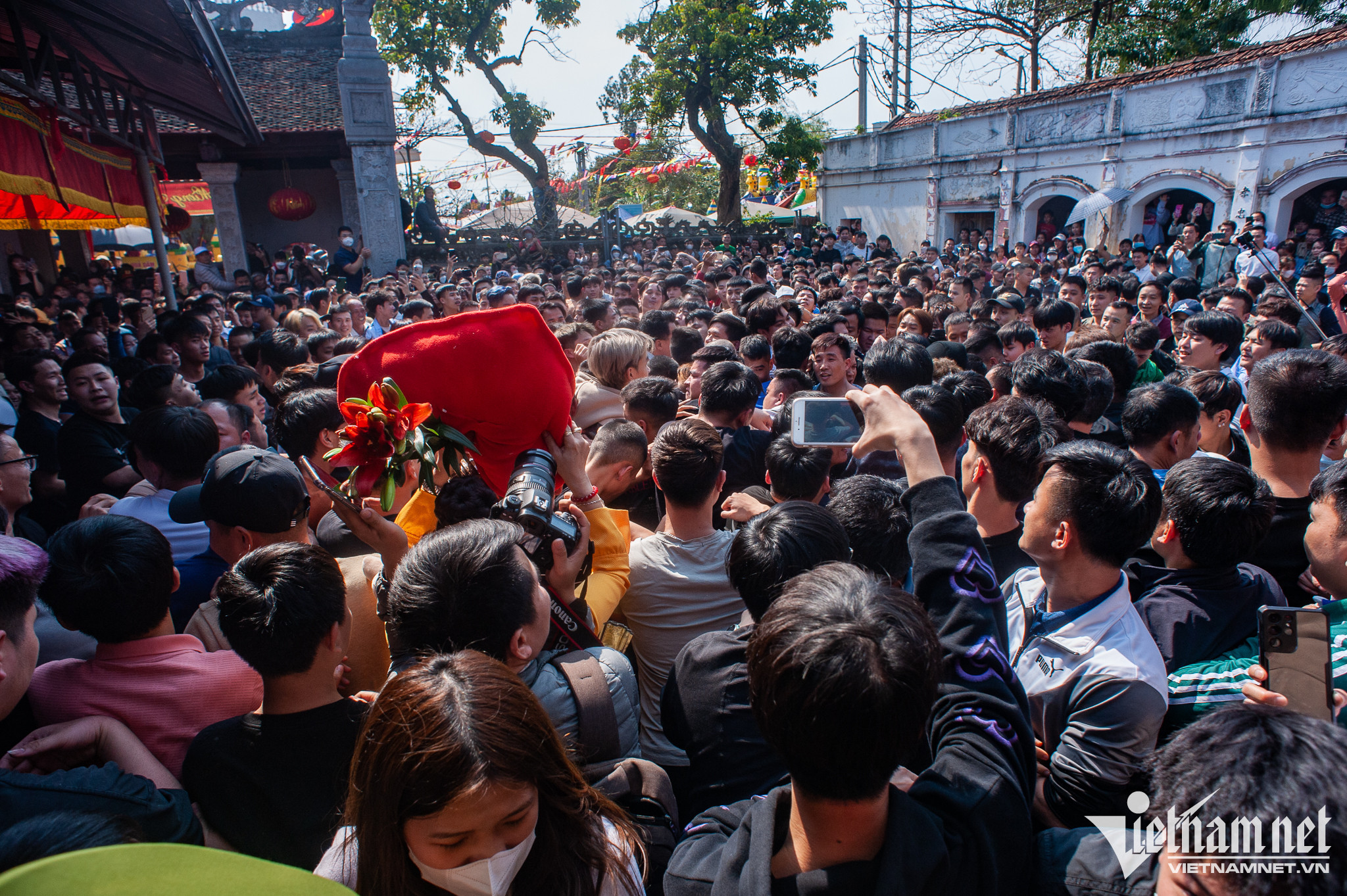 Cảnh tượng chen chúc, thậm chí xảy ra ẩu đả trong quá trình giằng bông. Có trường hợp bị chấn thương, chảy máu.
