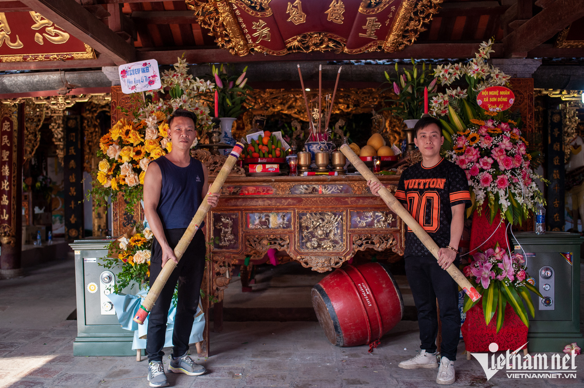 Người chiến thắng phải gửi lại bông ở đình làng, về làm lễ rồi mới đưa cây bông lên bàn thờ nhà mình. Năm nay, anh Phạm Thanh Sơn (29 tuổi) và Nguyễn Như Dương (25 tuổi) cùng ở xã Sơn Đồng là người giành được cây bông.