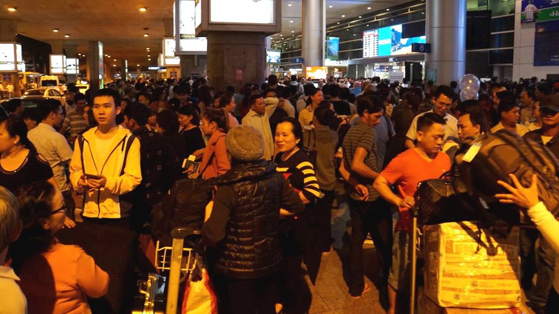 Thời điểm này khu vực nhộn nhịp nhất sân bay Tân Sơn Nhất là sảnh đến của nhà ga quốc tế. Ngay cả ban đêm tại đây vẫn thường trực hàng trăm người đón thân nhân từ nước ngoài trở về. Số hiệu chuyến bay cho thấy đa số xuất phát từ Hàn Quốc, Đài Loan, Singapore và Malaysia, ngoài ra còn nhiều nơi khác như Úc, Hồng Kông hay Nhật Bản. Con số này phần nào nói lên nơi sinh sống của người Việt ở nước ngoài. |