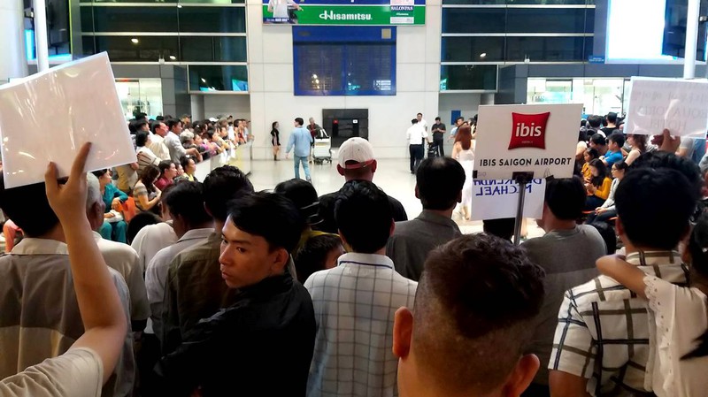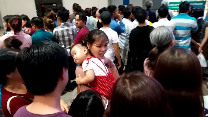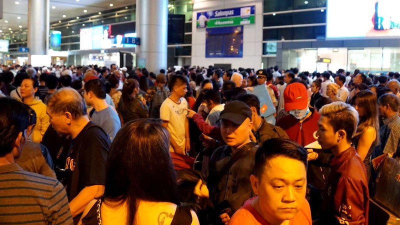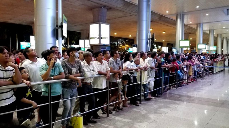 Dù lực lượng bảo vệ nhắc nhở liên tục nhưng do lượng người tập trung quá đông nên các lối đi không còn phân định được rõ ràng, khiến việc di chuyển hành lý chậm chạp. Tuy nhiên không ai cảm thấy phiền lòng vì đều đang vui mừng khi gặp lại người thân sau thời gian dài xa cách. |