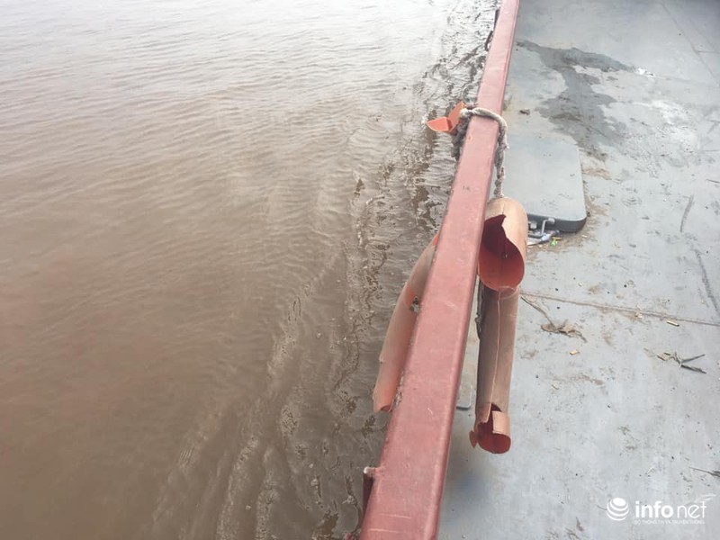 Chiếc “phao cứu sinh” duy nhất trên chuyến phà mang số hiệu “NĐ 3009: 48N – 2 ô tô” được treo bên lan can nhưng lại là chiếc phao bị vỡ làm hai mảnh.