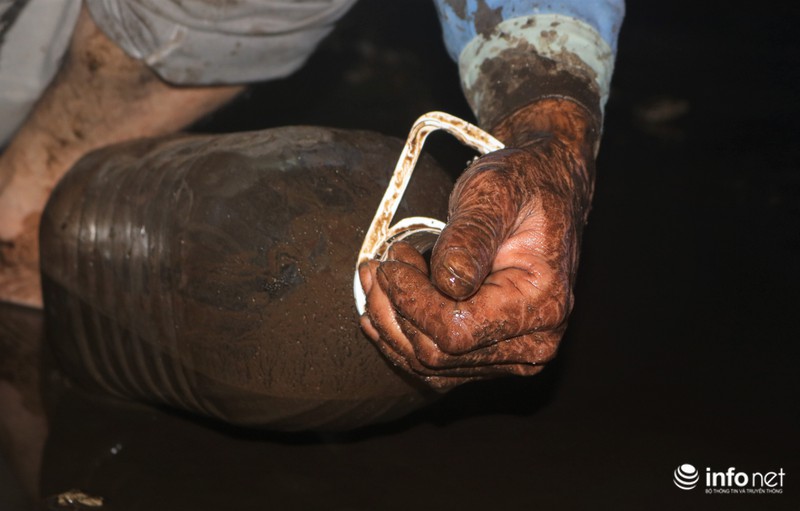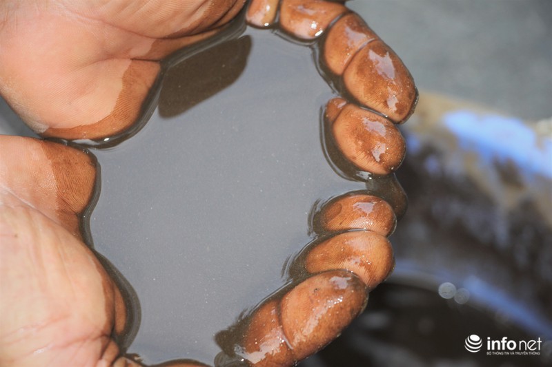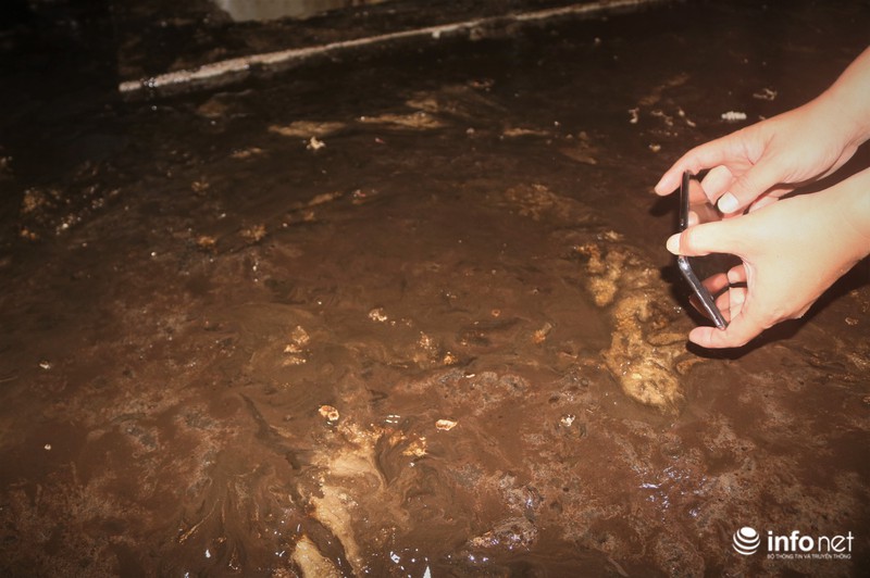 Qua quan sát có thể thấy mặt sàn các bể ngầm đen kịt váng dầu. Dầu nổi váng trong nước và bốc mùi khá khó chịu… |